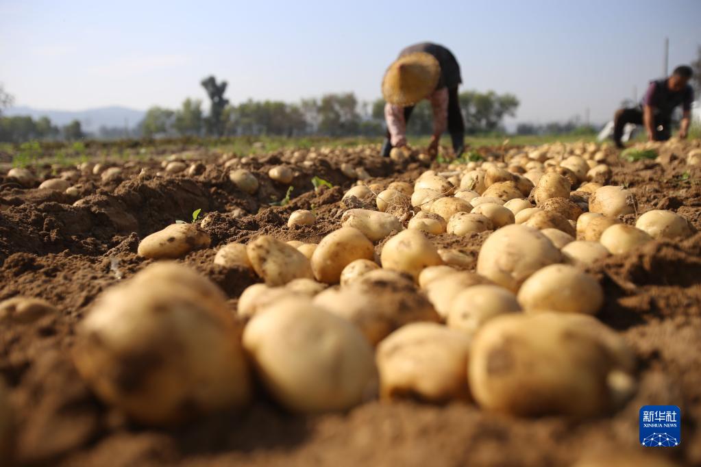 2月19日,在福建省廈門市翔安區內厝鎮許厝村,農民在蔬菜基地里采收馬鈴薯。