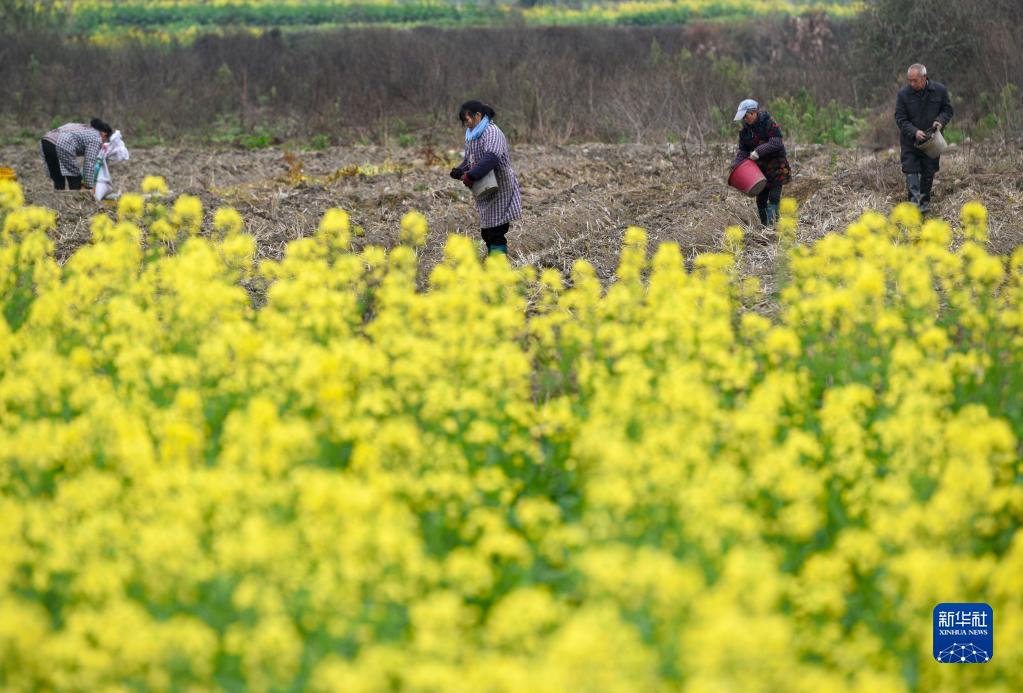 2月19日,農民在湖南省永州市道縣清塘鎮達村田里施肥。