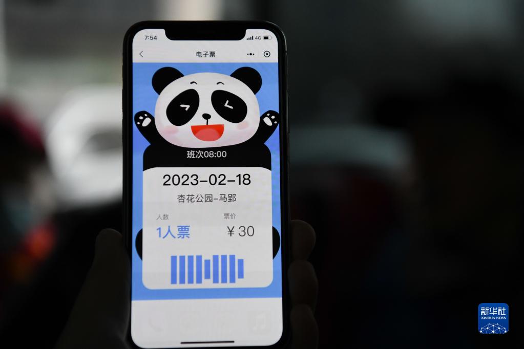 2月18日,市民展示自己購買的“草莓采摘”定制公交專線電子票。