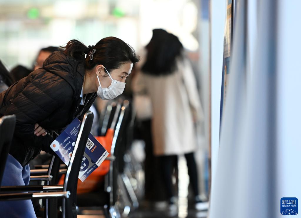 2月19日,在天津經濟技術開發區春季促就業暖心行動公益現場招聘會,求職者查看招聘信息。