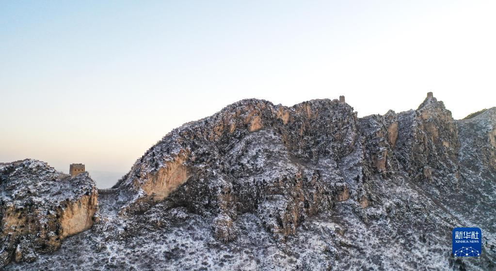 2月19日,這是在晨曦中拍攝的雪后司馬臺長城(無人機照片)。