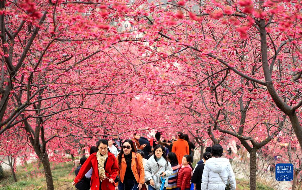 2月19日,游客在四川省瀘州市江陽區丹林鎮建設村櫻花谷景區游玩。