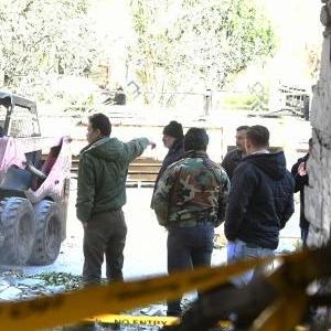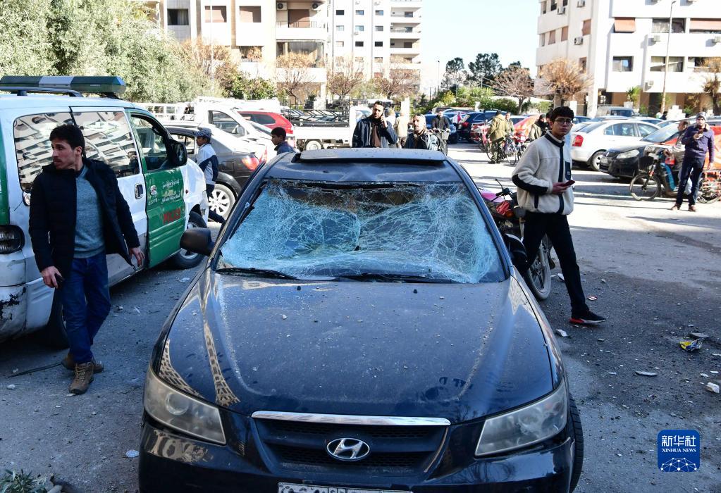 這是2月19日在敘利亞大馬士革拍攝的在導彈襲擊中受損的車輛。
