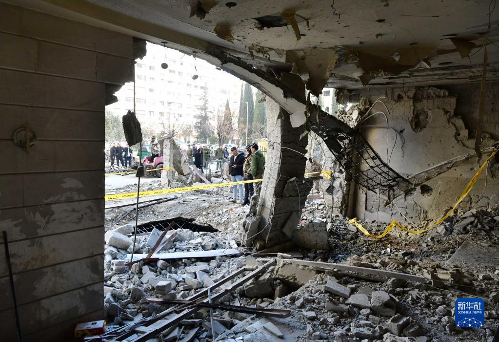 這是2月19日在敘利亞大馬士革拍攝的在導彈襲擊中受損的建筑。