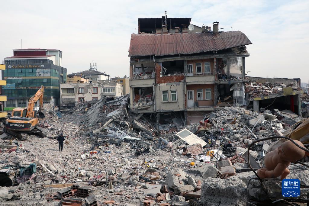 這是2月19日在土耳其南部卡赫拉曼馬拉什省卡赫拉曼馬拉什市拍攝的震后景象。