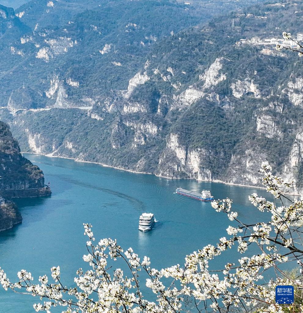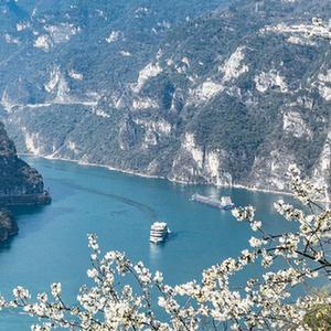 春到峽江,一江春水碧綠,兩岸山花盛開,船舶往來如梭,構成一幅美麗的畫卷。