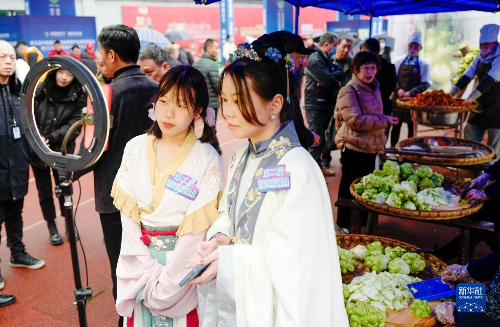 2月20日,在第五屆中國重慶·涪陵榨菜產業國際博覽會現場,網絡主播進行線上直播推介涪陵榨菜。
