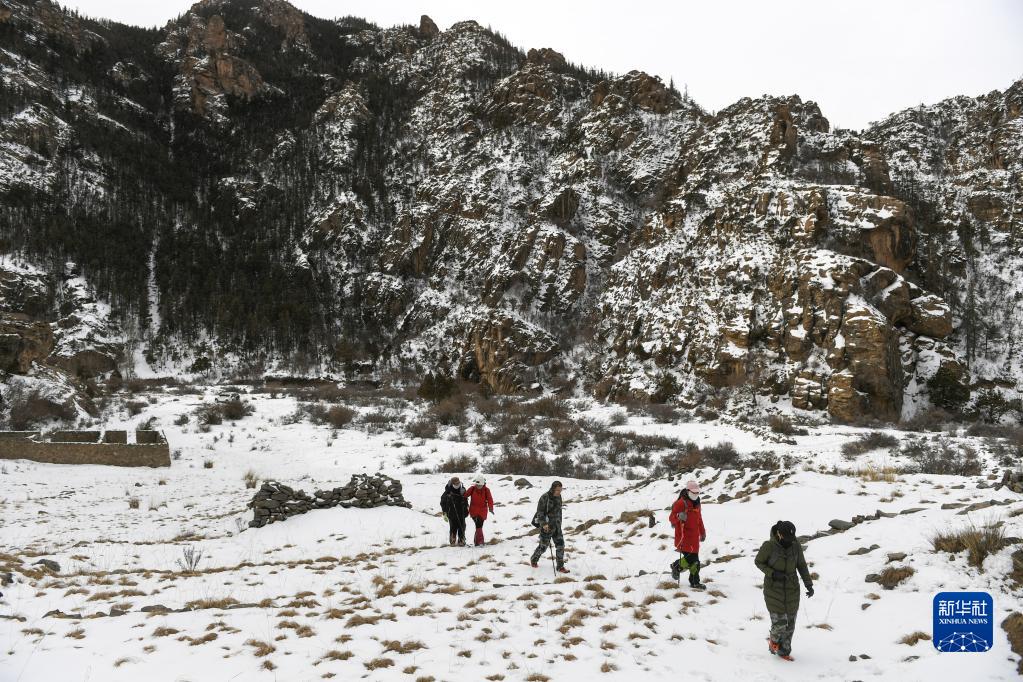 2月20日,工作人員行走在內蒙古賀蘭山國家級自然保護區內。