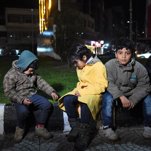 2月20日晚,在黎巴嫩的黎波里,市民在地震發生后到街頭避險。