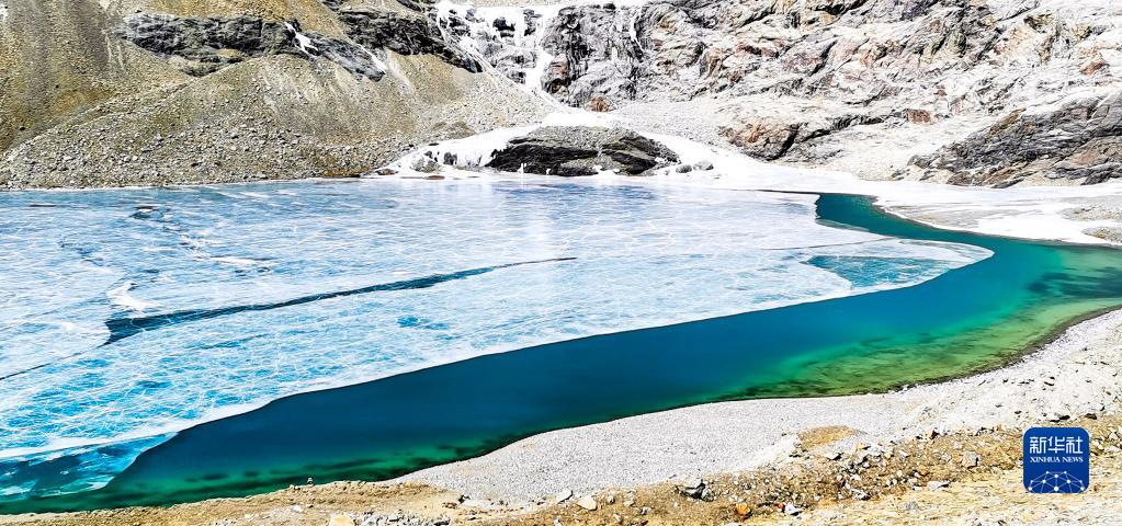 這是瓊穆崗嘎冰川上的一處冰湖(手機照片,2月20日攝)。