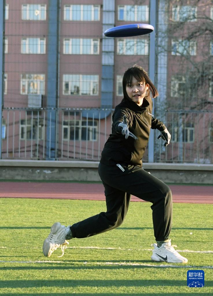 2月20日,在北京大學附屬中學,學生在體育課中進行極限飛盤練習。