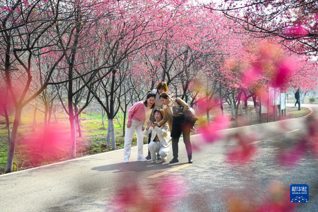 近日,湖南省常寧市羅橋鎮廟山村櫻花園櫻花爛漫,吸引游客前來踏青賞花,樂享春光。