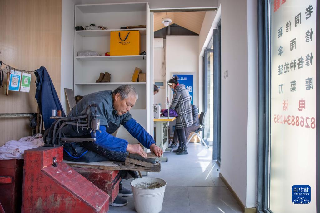 2月21日,磨刀匠在“幸福格子鋪”內為社區居民提供磨刀服務。在杭州市上城區丁蘭街道的場地和設備支持下,便民服務單位免費入駐“幸福格子鋪”,為周邊社區的4萬余名居民提供小家電維修、衣物縫補、修鞋、理發等便民服務。