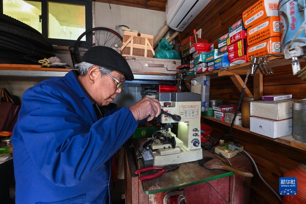 2月21日,方木根在浙江省杭州市富陽區銀湖街道高橋社區的便民服務亭內給居民配鑰匙。該便民服務亭由社區提供,免租金和水電費,同時還組織黨員志愿者定期進行周邊環境保潔。銀湖街道在打造現代社區的過程中,設置多個“小修小補”便民服務亭,積極打造便民生活圈、滿足居民日常生活需求。