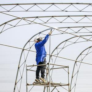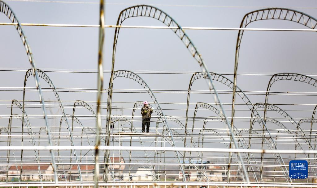 2月20日,工人在瑞昌市賽湖農場三分場建設智慧大棚。