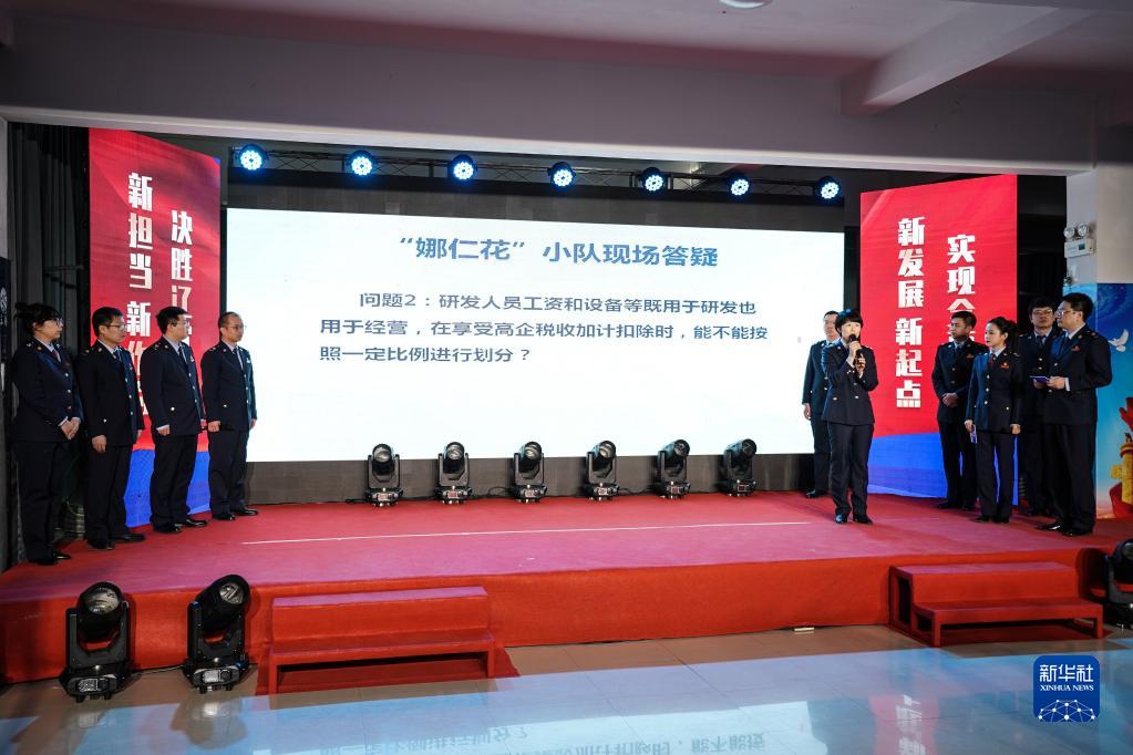 2月21日,國家稅務總局阜新市稅務局的工作人員在活動現場為企業解答問題。