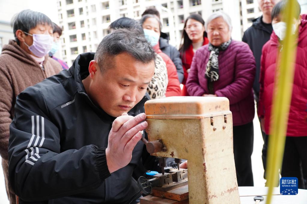 2月21日,在山東省成武縣文亭街道萬福城小區,配鑰匙師傅邵珠超在為小區居民服務。