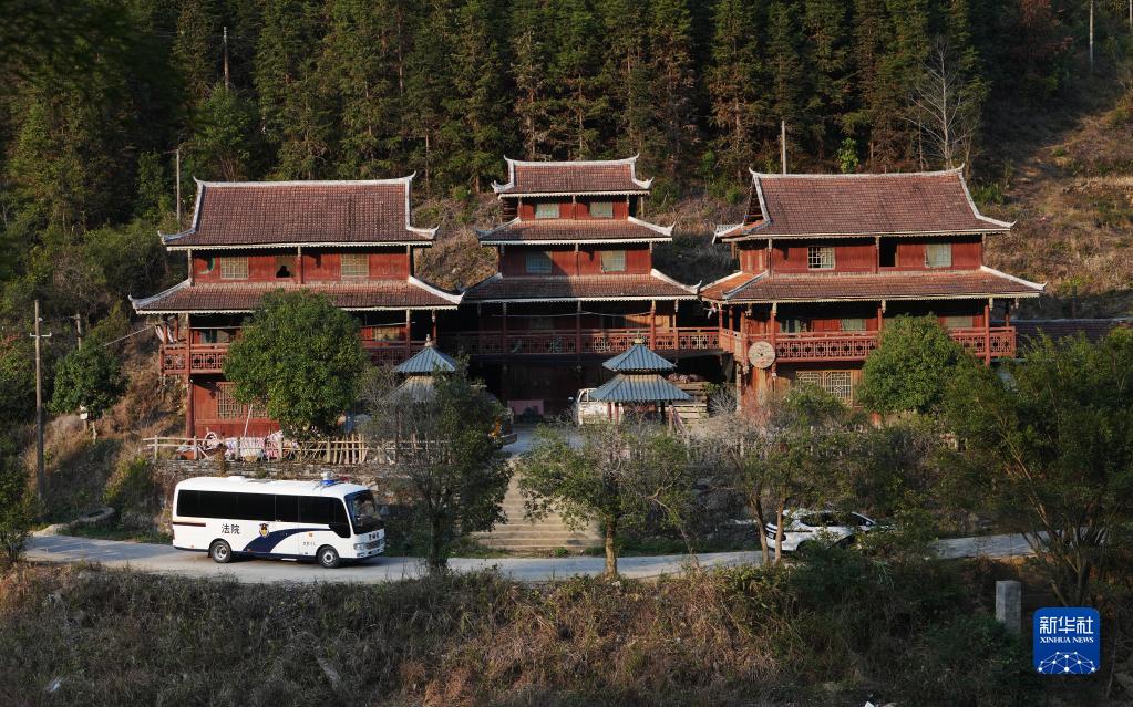 2月20日,巡回審判車行駛在柳州市融水苗族自治縣鄉村道路上。