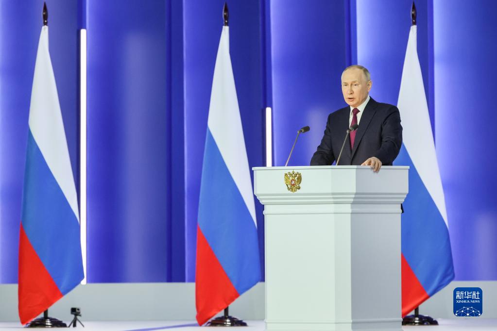 2月21日,俄羅斯總統普京在首都莫斯科向議會兩院發表國情咨文。新華社/塔斯社