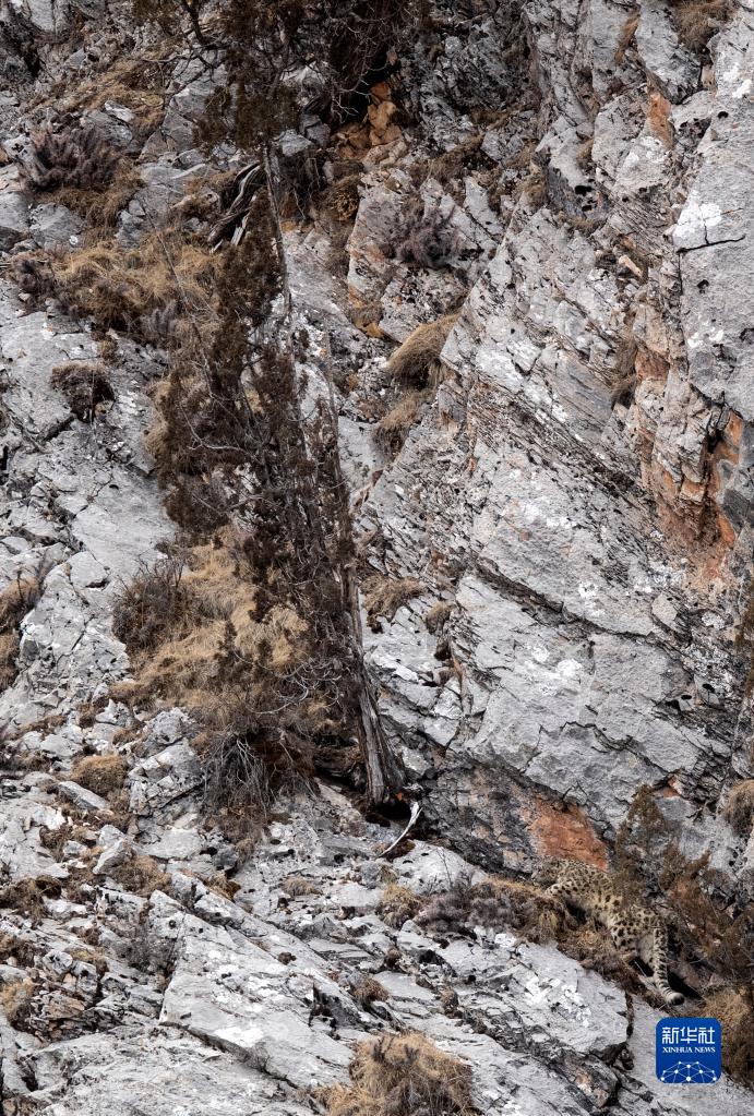 2月21日,在青海省玉樹藏族自治州雜多縣昂賽鄉境內的昂賽大峽谷內,一只雪豹正在活動。