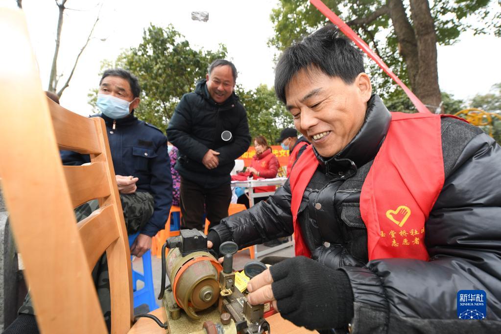 2月22日,浙江省湖州市,鎖匠劉壽濤在志愿服務站為群眾配鑰匙。