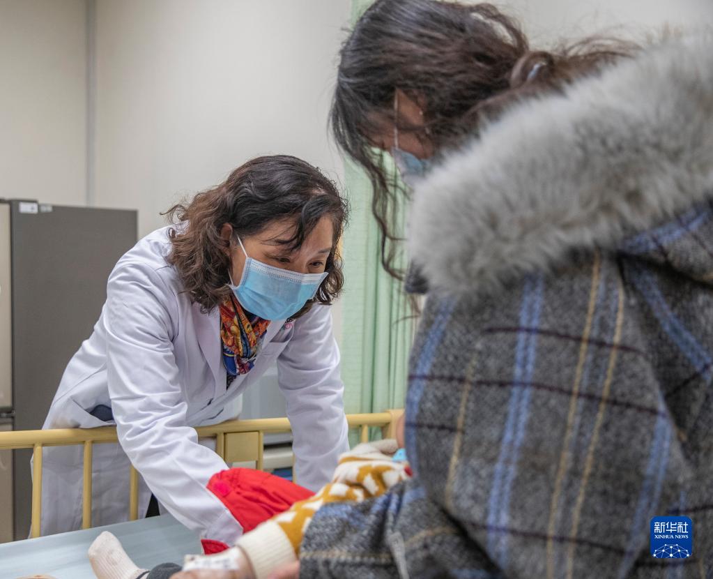 2月16日,在重慶醫科大學附屬兒童醫院兩江院區腎臟內科,李秋在查房時檢查患兒身體狀況。