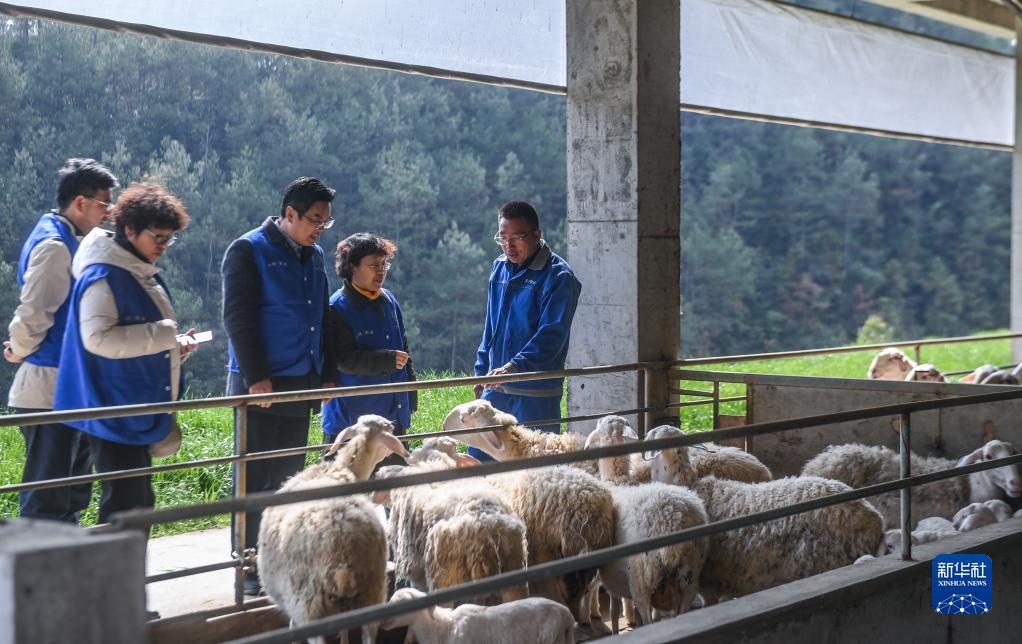 2月22日,在杭州市臨安區昌化鎮后營村湖羊養殖基地,臨安區科學技術協會“三服務”小分隊的農技專家姜俊芳(浙江省農科院副研究員,右二)在指導養殖戶科學養殖。