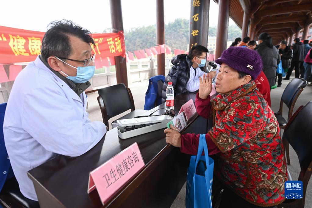 2月22日,在杭州市臨安區昌化鎮的東坡橋上,醫院專家在給當地百姓進行衛生健康咨詢。