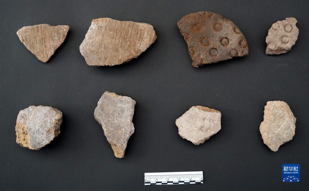 河北尚義縣四臺新石器時代遺址出土的戳印紋陶片(資料照片)。