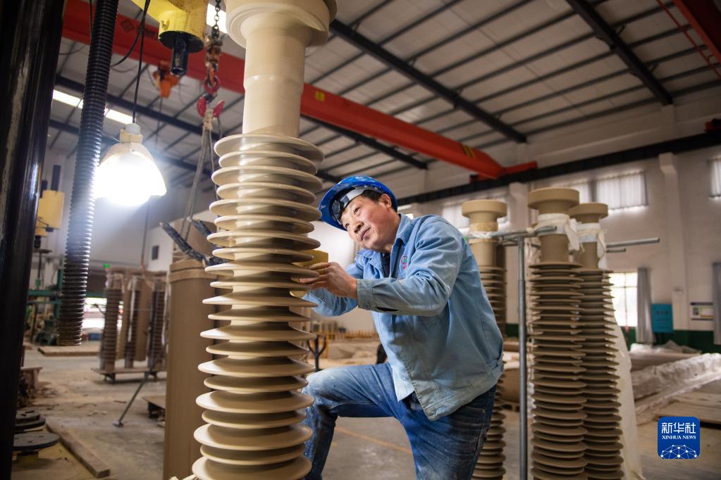 2月22日,在位于醴陵市的湖南陽東電瓷電氣股份有限公司生產車間,工作人員在制作工業瓷產品——瓷絕緣子。