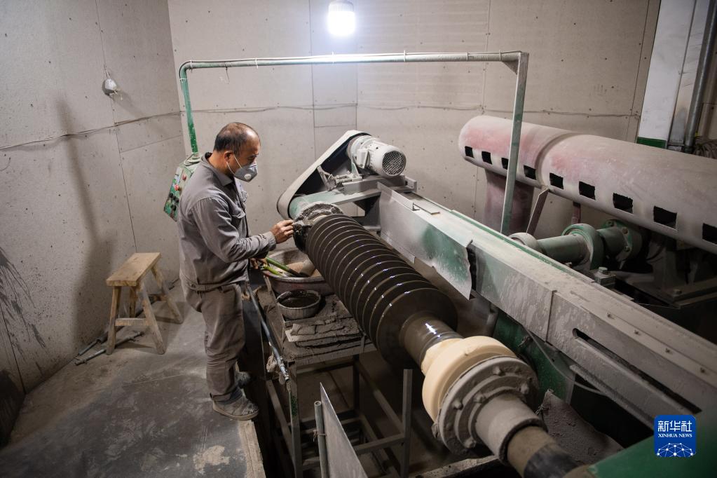 2月22日,在位于醴陵市的湖南陽東電瓷電氣股份有限公司生產車間,工作人員給瓷絕緣子上釉。