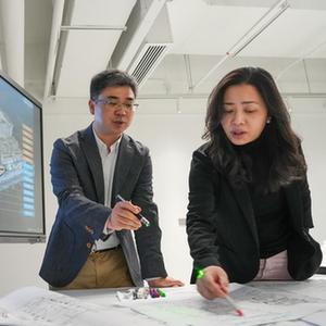 2月21日,深圳中安產城集團的彭飛(中)和設計團隊在為廣東省肇慶市一個35萬平方米工業上樓項目設計“空中廠房”個性化定制方案。