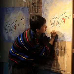 2月22日,在敦煌小鎮鳴沙書院,藝術工作者張杰龍(左)指導學員臨摹敦煌壁畫。