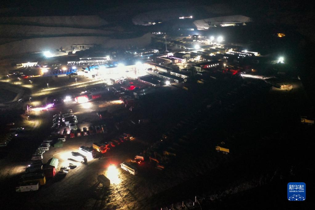 2月23日凌晨,各救援隊伍在內蒙古自治區阿拉善盟阿拉善左旗新井煤業有限公司集結(無人機照片)。