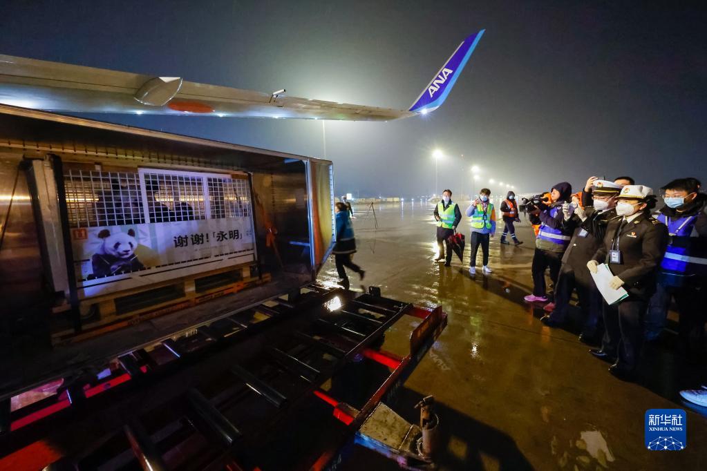 當日,生活在日本和歌山縣白浜町“冒險世界”樂園的大熊貓“永明”和它的雙胞胎女兒“櫻浜”“桃浜”搭乘全日空航空公司貨運包機回國,隨后被送往成都大熊貓繁育研究基地。