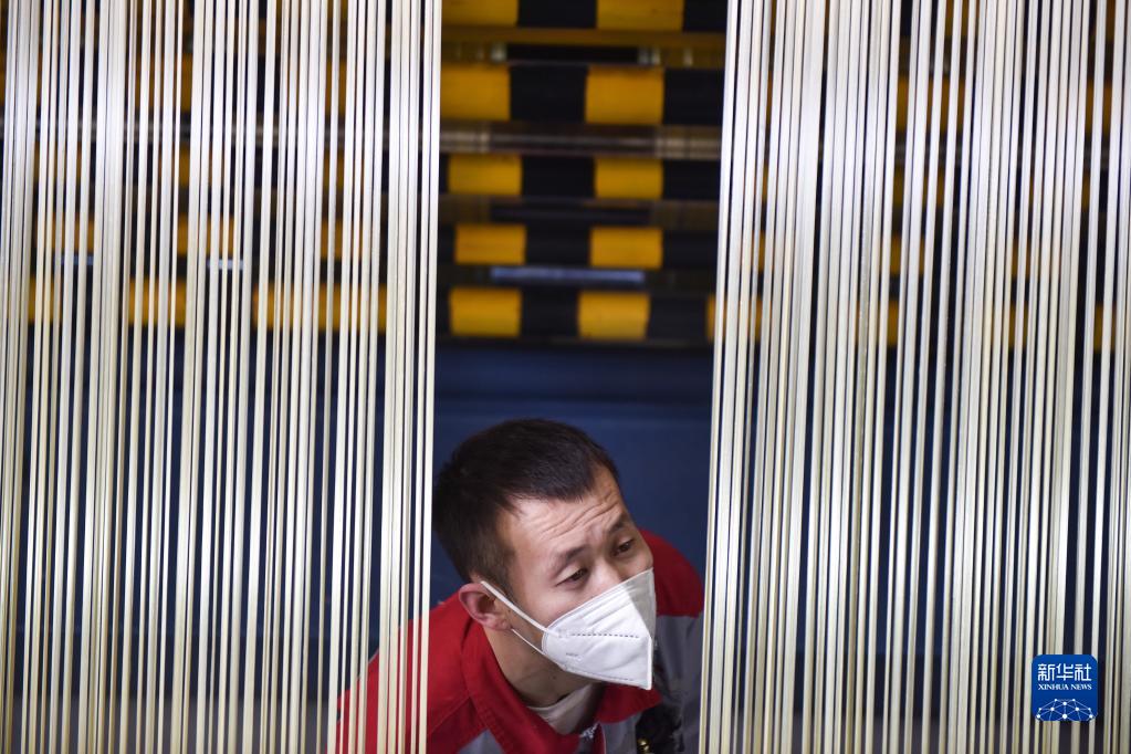 2月22日,在中復神鷹碳纖維西寧有限公司,工作人員在檢查碳纖維原絲。