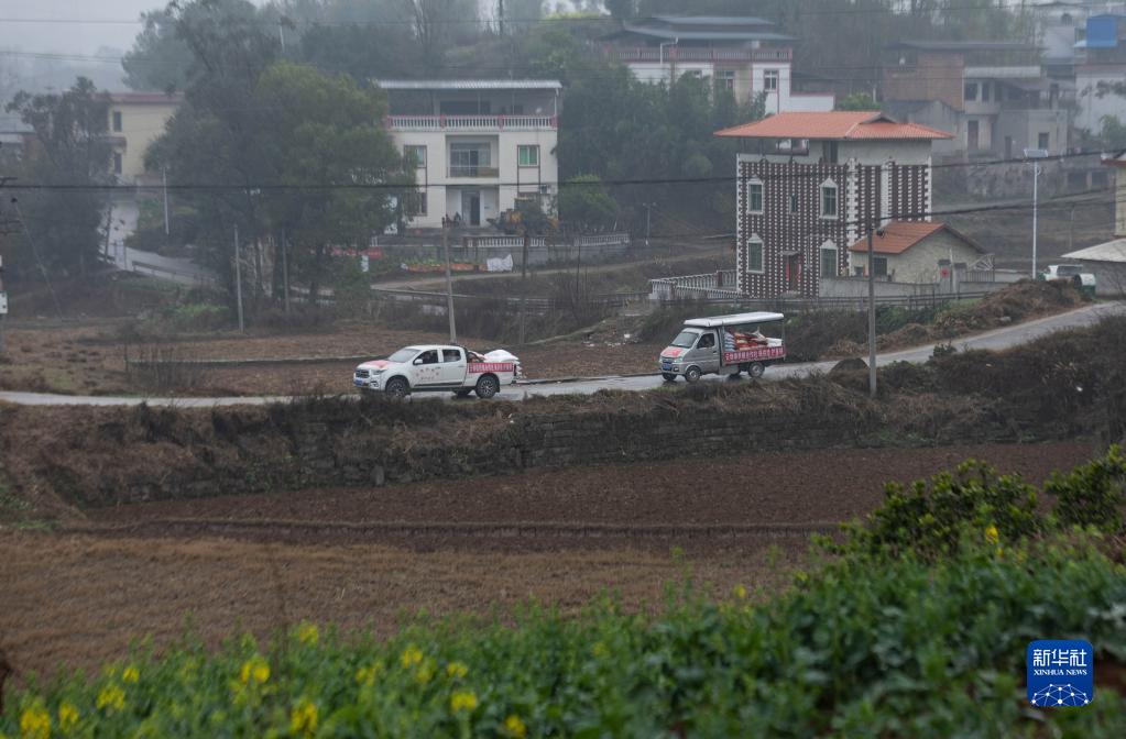 2月22日,四川省瀘縣供銷合作社農資服務員為農戶運送化肥和種子等農資。