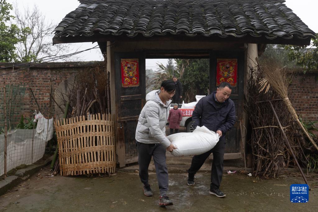 2月22日,四川省瀘縣供銷合作社農資服務員把化肥和種子送到云錦鎮稻子村秦治華家中。