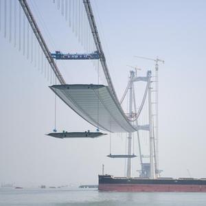 目前,深中通道伶仃洋大橋正有序推進鋼箱梁吊裝施工。伶仃洋大橋是深中通道的重要組成部分,主跨1666米,是世界上最大跨徑的海上鋼箱梁懸索橋。