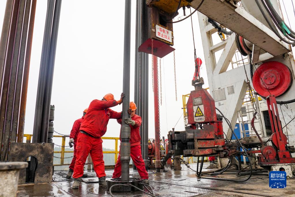 2月21日,工人在涪陵頁巖氣田焦頁12號平臺的焦頁12—檢1井作業平臺上進行該平臺檢修井的鉆井作業。