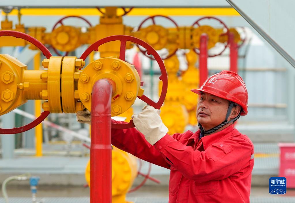 2月21日,中國石化江漢油田涪陵頁巖氣公司的技術人員在涪陵頁巖氣田焦頁12號平臺內進行日常檢查維護。