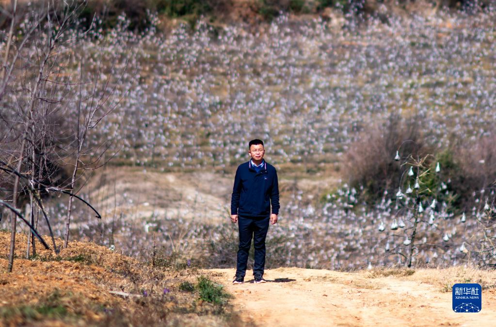 袁海波在云南省曲靖市馬龍區一種植基地走訪(2月11日攝)。