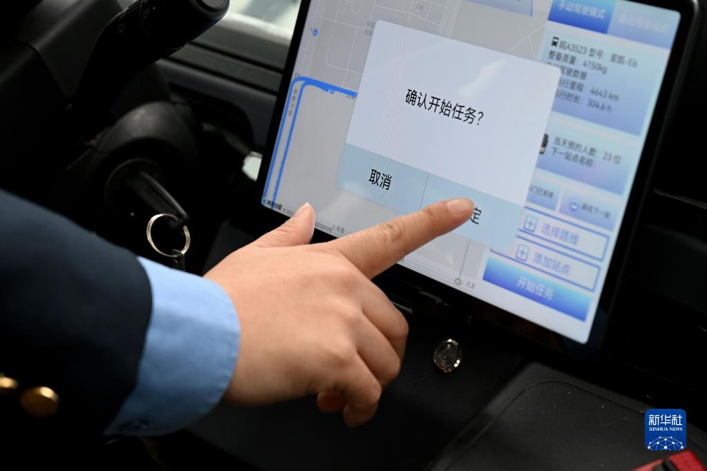 2月22日,自動駕駛公交車的隨車安全員將車輛設置為自動駕駛模式。