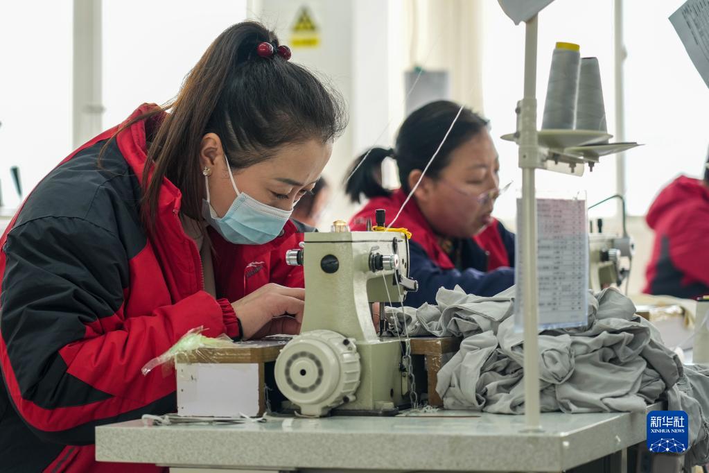 2月23日,在嘉祥縣的一家手套生產企業,員工在車間內加工生產手套。