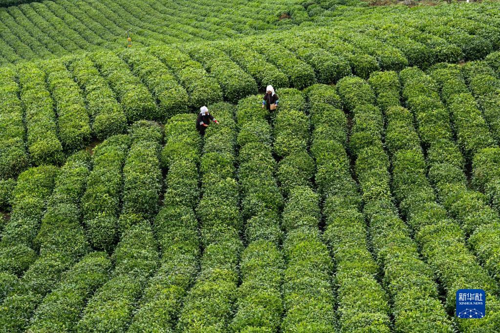 2月23日,貴州省普安縣茶源街道聯盟村的茶農在采摘春茶。