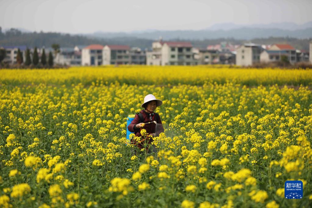 2月20日,貴州省錦屏縣敦寨鎮亮司村村民在油菜地里勞作。