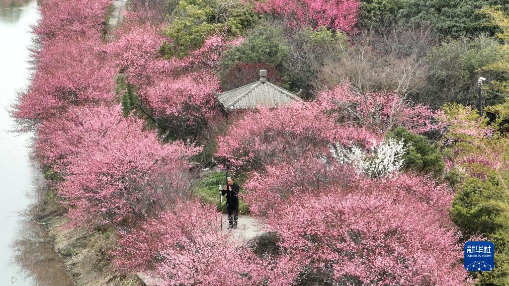 2月22日拍攝的江蘇省太倉市雙鳳鎮勤力村梅花莊園(無人機照片)。