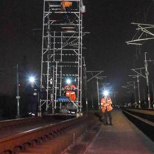 每日0至4時,中國鐵路上海局集團有限公司上海高鐵基礎設施段的綜合維修工們都要在滬寧城際高鐵沿線對接觸網設備進行全面“體檢”,守護高鐵運行安全。綜合維修工的日常工作包括接觸網絕緣子清掃、吊弦更換、隔離開關檢修等。