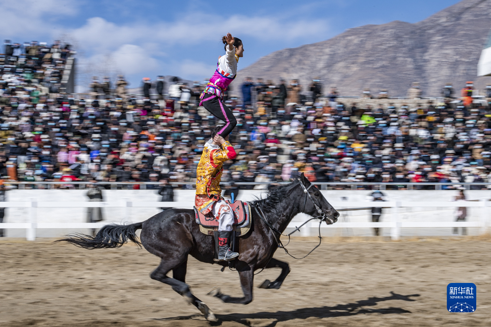 每年藏歷新年初三,在拉薩賽馬場舉辦馬術表演已成為當地慶祝新年的傳統,深受廣大群眾喜愛。騎手們英姿颯爽,為觀眾們帶來騎馬拾哈達、騎馬射箭等精彩表演。