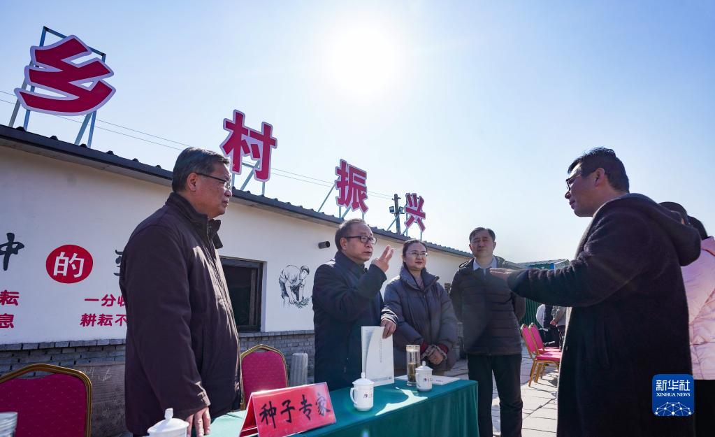 2月23日,在鄒平市長山鎮八方農場活動現場,一名種糧大戶向農業專家咨詢糧食種子問題。